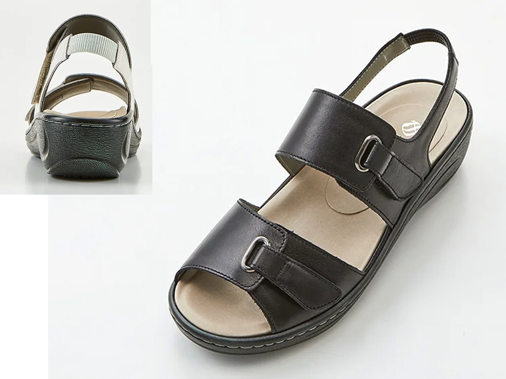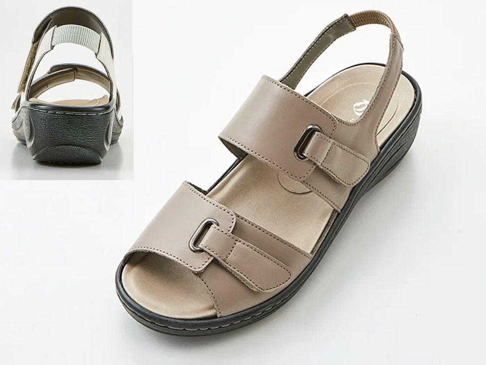ワイド2本バンド ベルトで調節できるベルクロサンダル。